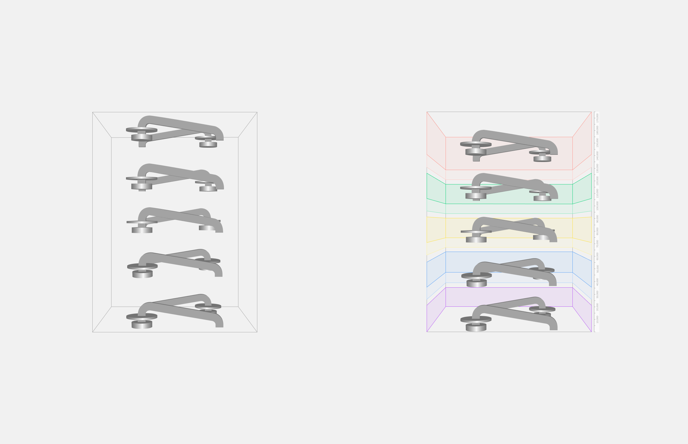 Left: a standard flat build. Five parts in a chamber, no spatial distinction between zones. Right: multilevel enabled. Each level is a distinct colour-coded band, with labels and height annotations on the right edge. The same five parts now sit clearly within their level boundaries. This visualisation was not in the original brief. I proposed it after discovery sessions confirmed engineers had no spatial reference for build structure inside the software. Getting it into scope meant building alignment across product, engineering, and HP stakeholders, grounded in what I heard in research. It is the single decision that transformed this from a parameter form into a configuration tool.